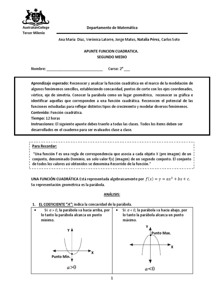 Guia y Contenido Funcion Cuadratica (1) | Función (Matemáticas) | Enseñanza de matemática