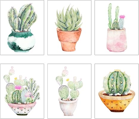 Meishe Art Poster Print Modern Cactus in Pot Potted Cacti Watercolor Painting Botanical Green Succulent Plants with Pink Flowers Fashion Home Wall Decor Set of 6pcs: Amazon.ca: Home & Kitchen
